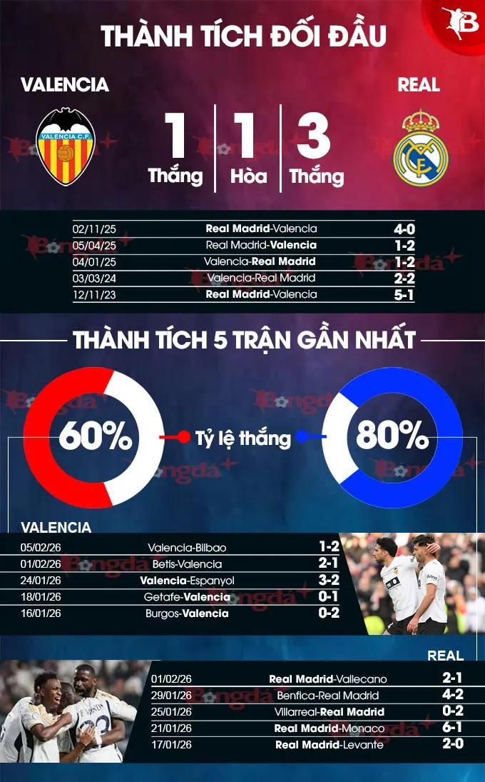 Ngược lại, Valencia đang trải qua giai đoạn khó khăn. Phong độ của họ trong 15 trận La Liga gần đây rất đáng lo ngại với chỉ 3 chiến thắng. Vị trí thứ 16 trên bảng xếp hạng phản ánh rõ sự bất ổn, khi họ chỉ cách nhóm cầm đèn đỏ đúng 1 điểm. Lịch sử đối đầu cũng không ủng hộ đội chủ nhà, khi để thua 7 trong 10 lần chạm trán gần nhất với Real Madrid.